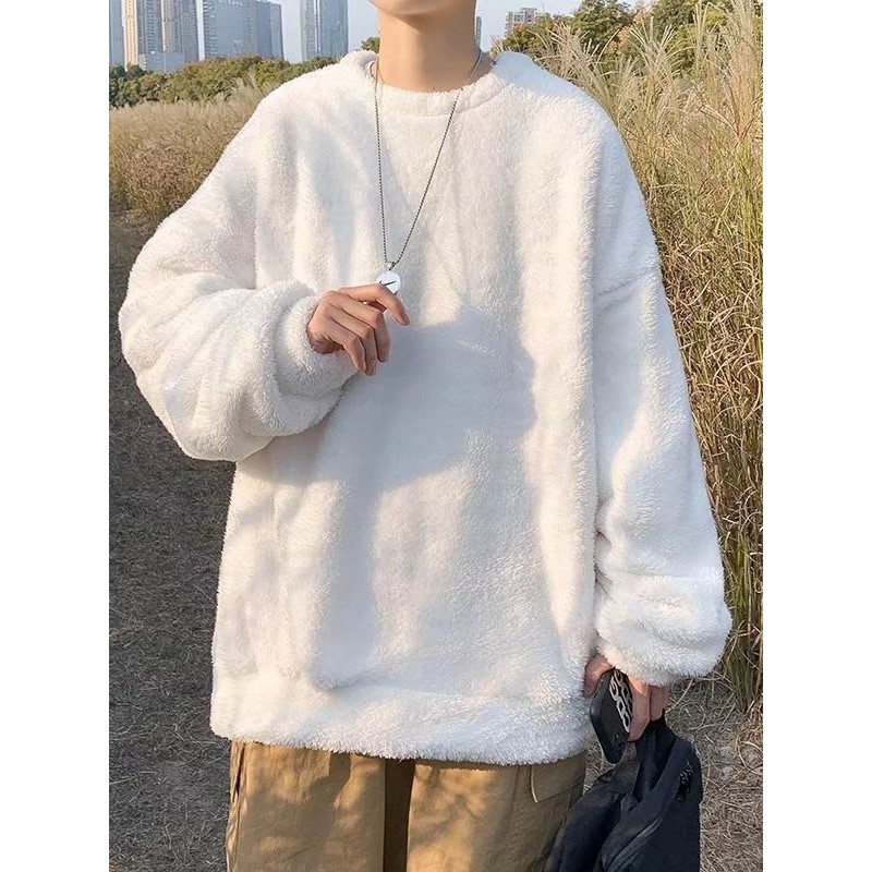 BJHG不计后果美式麂皮绒加绒卫衣男款冬季潮牌加厚重磅圆领外套女
