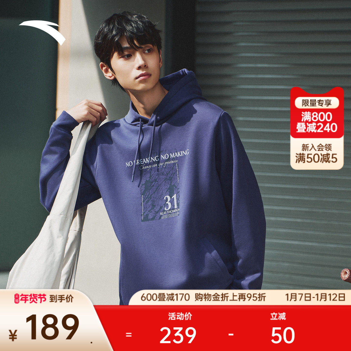 安踏连帽卫衣男款青少年宽松大码上衣2025新款冬季加绒加厚帽衫男