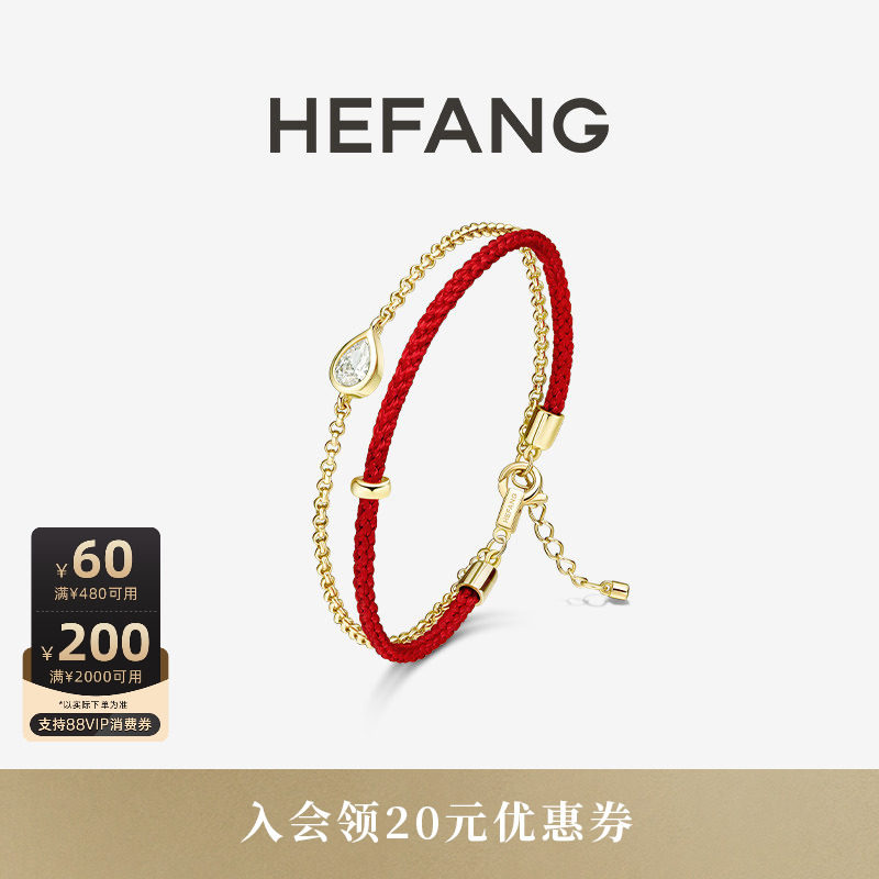HEFANG何方珠宝水滴红绳双层手链手绳高级饰品配饰女生日礼物