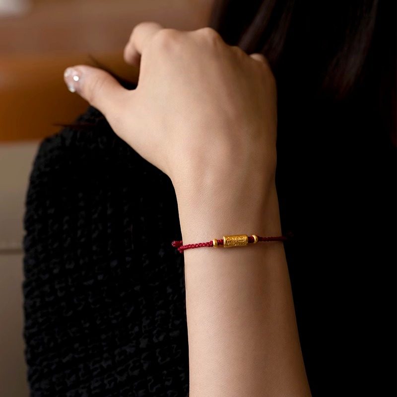 惜福宝印 足金小克重黄金本命年红绳手链细手绳生日新年礼物女生