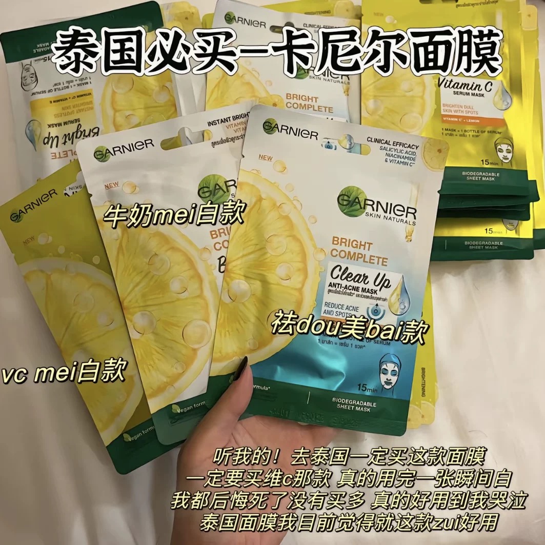 泰国原装卡尼尔Garnier牛奶VC亮白面膜柠檬VC面膜保湿提亮肤色水