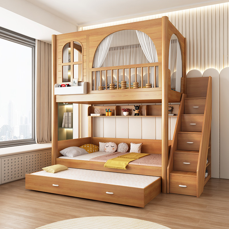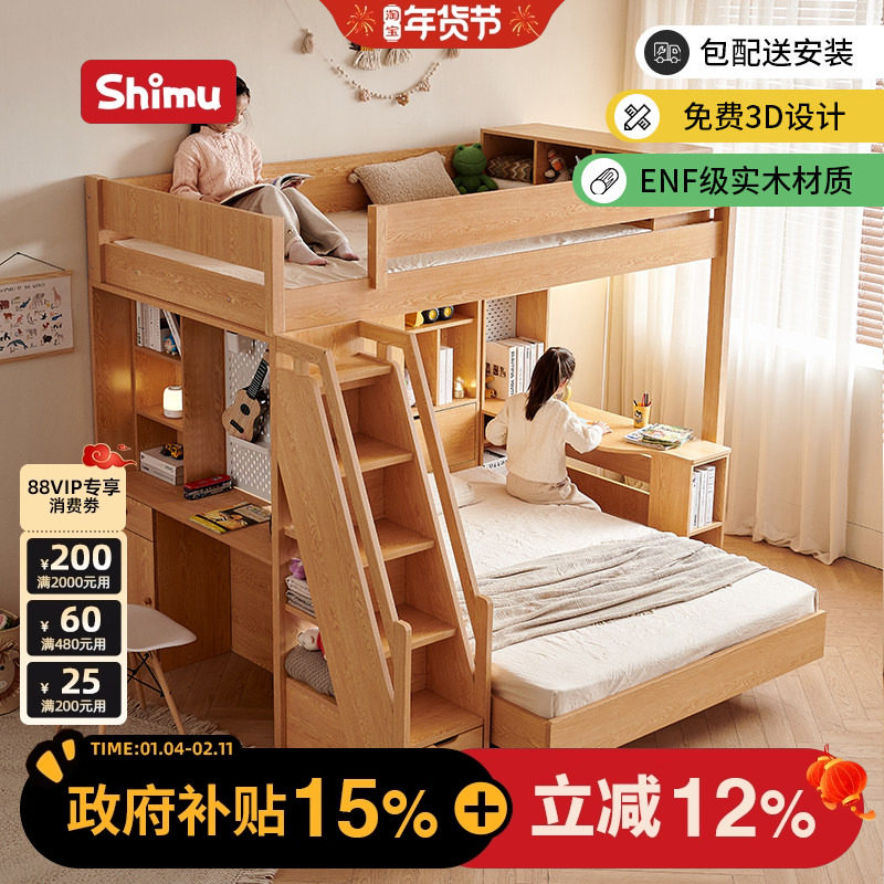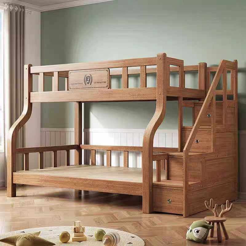 橡木高低床书桌双层床两层子母床双人床上下铺多功能儿童床上下床