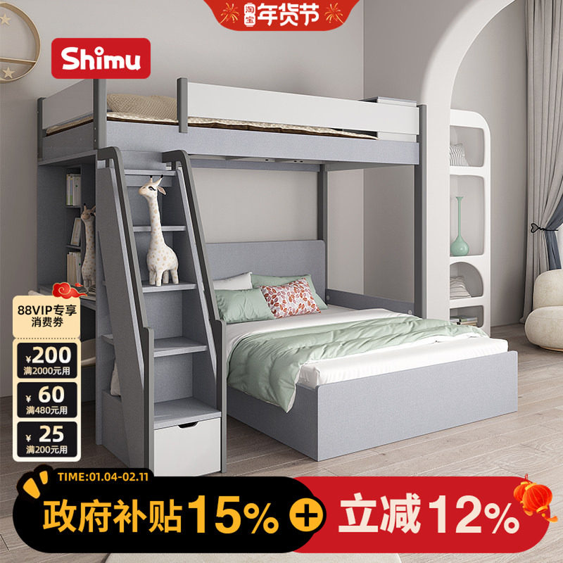 交错式上下子母床儿童高低床高架床小户型双层床两层双人床上下铺