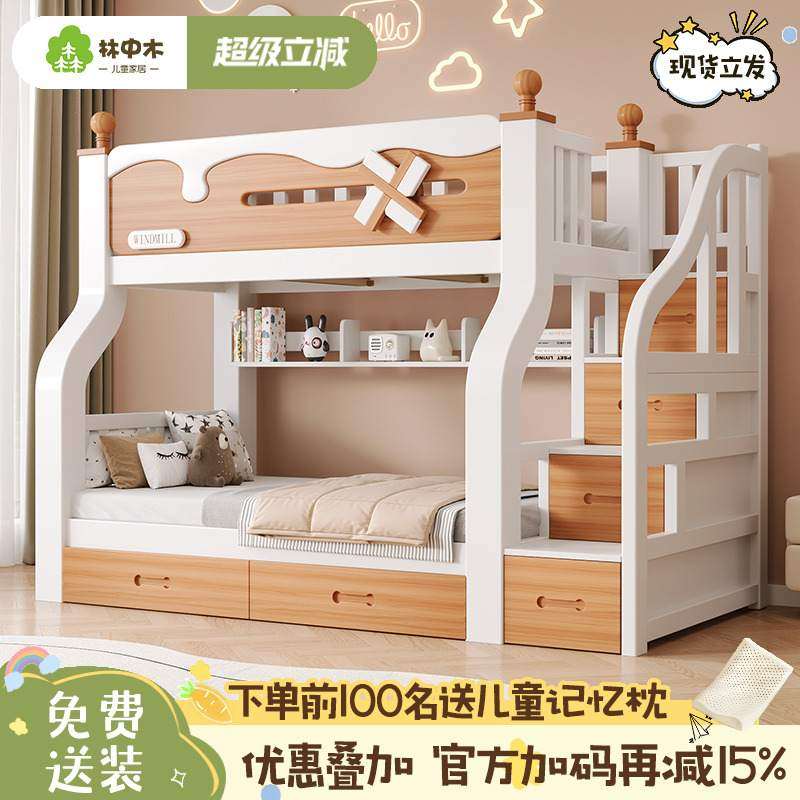 速发全实高上下床双层床组合木低床两层子母儿双人床上下铺木床床