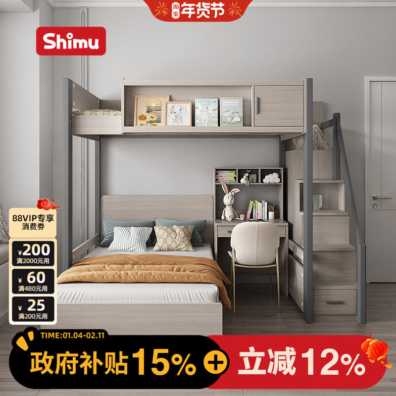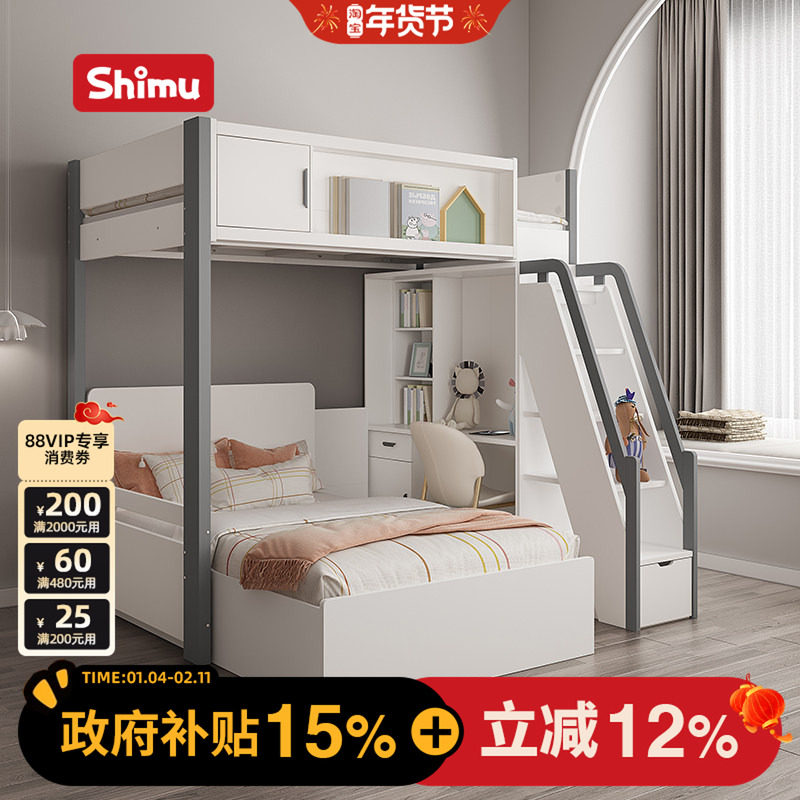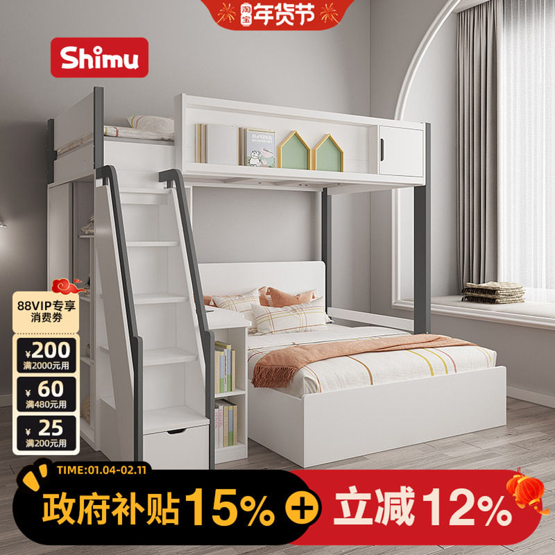 双人床上下铺多功能双层床组合小户型儿童子母床高架床高低两层床
