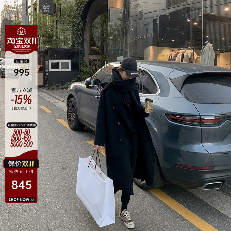 双面羊绒大衣女中长款驼色韩版宽松双排扣秋冬新款高端羊毛呢外套