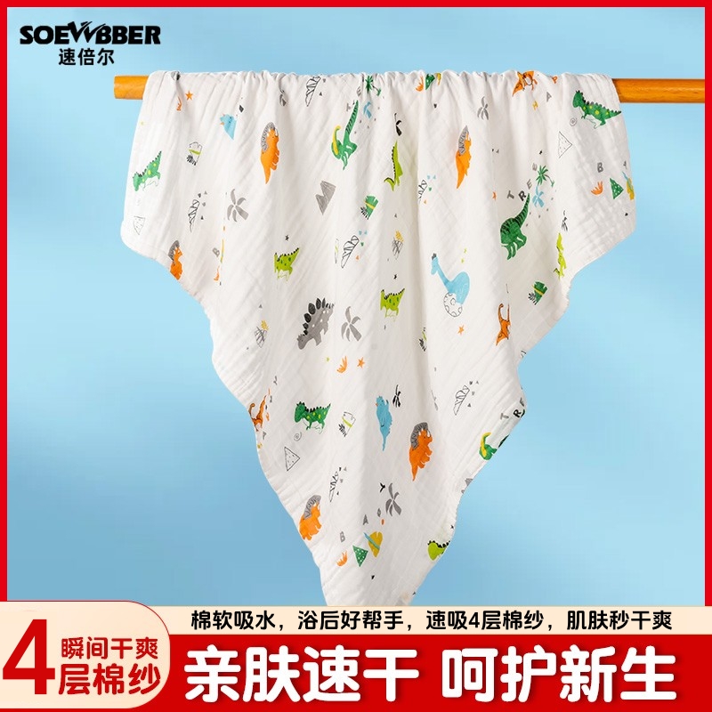 婴儿浴巾全棉纯棉四层纱布新生儿包巾夏初生宝宝用品儿童盖毯高密