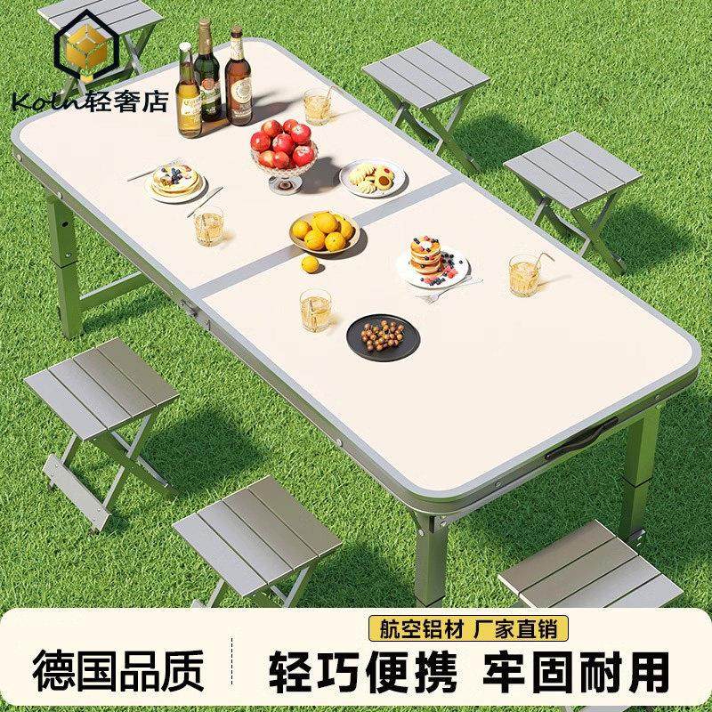 德国可折叠桌子户外摆摊小桌子可携式铝合金露营野外餐桌椅地摊桌