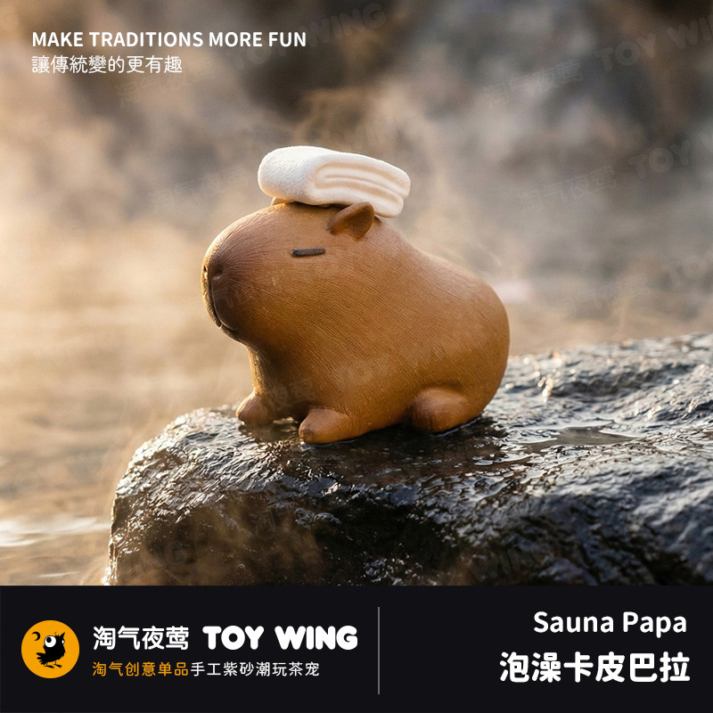 泡澡卡皮巴拉紫砂茶宠情绪稳定摆件桌面治愈系可养包浆·淘气夜莺