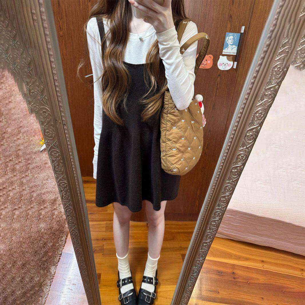 韩版减龄甜美针织吊带背心裙女学生秋冬叠穿长袖打底上衣两件套装