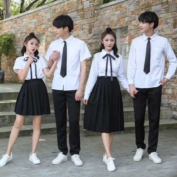 初中高中班服韩版学生秋冬白衬衫朗诵合唱演出服男女白衬衫裙套装