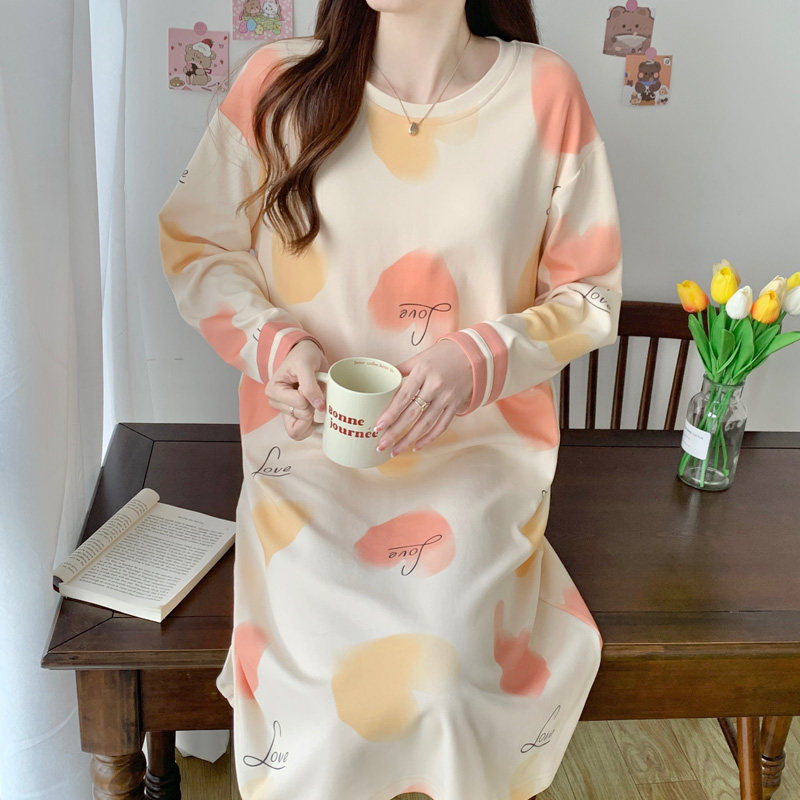 简约韩版宽松珊瑚绒睡裙可爱学生秋冬新款保暖睡袍女士网红风套装