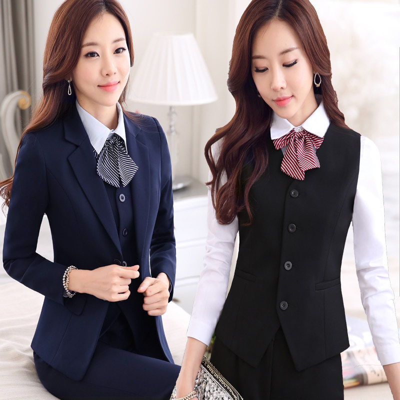 团购韩版职业马甲套装秋冬加大码西装职业女裙女大学生面试装西服