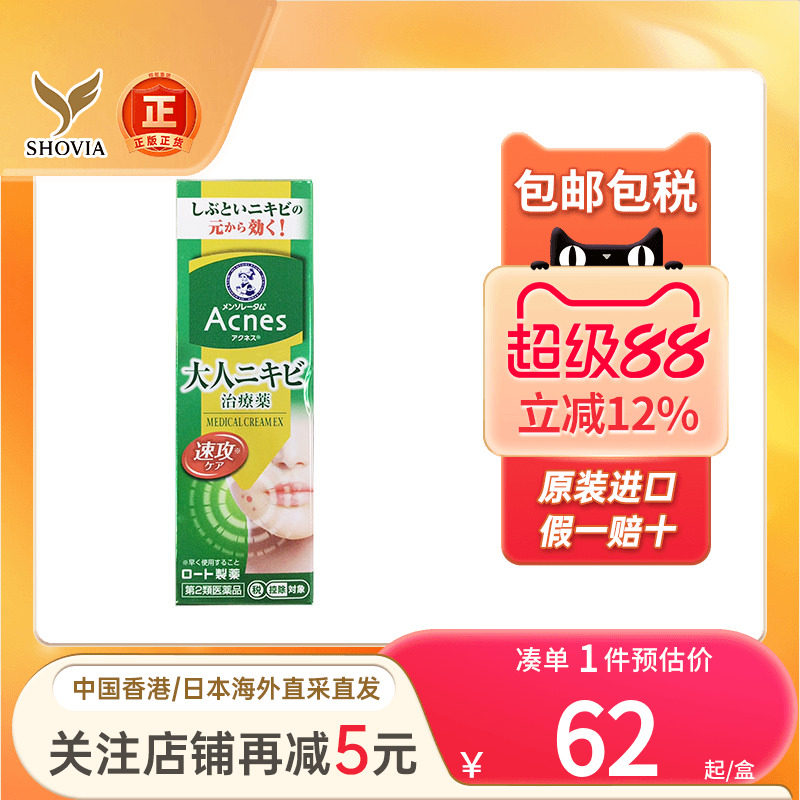 日本Rohto乐敦Acnes速攻祛痘膏痤疮青春痘痘粉刺暗疮软膏16g进口