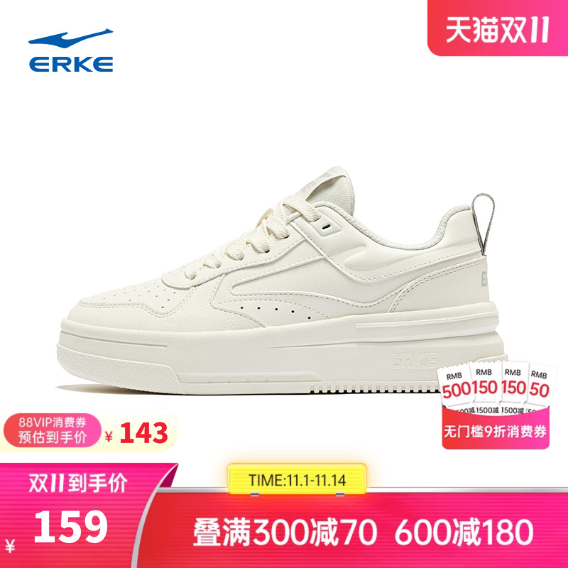 玩酷鸿星尔克女鞋小白鞋冬季新款厚底增高板鞋空军一号白色运动鞋