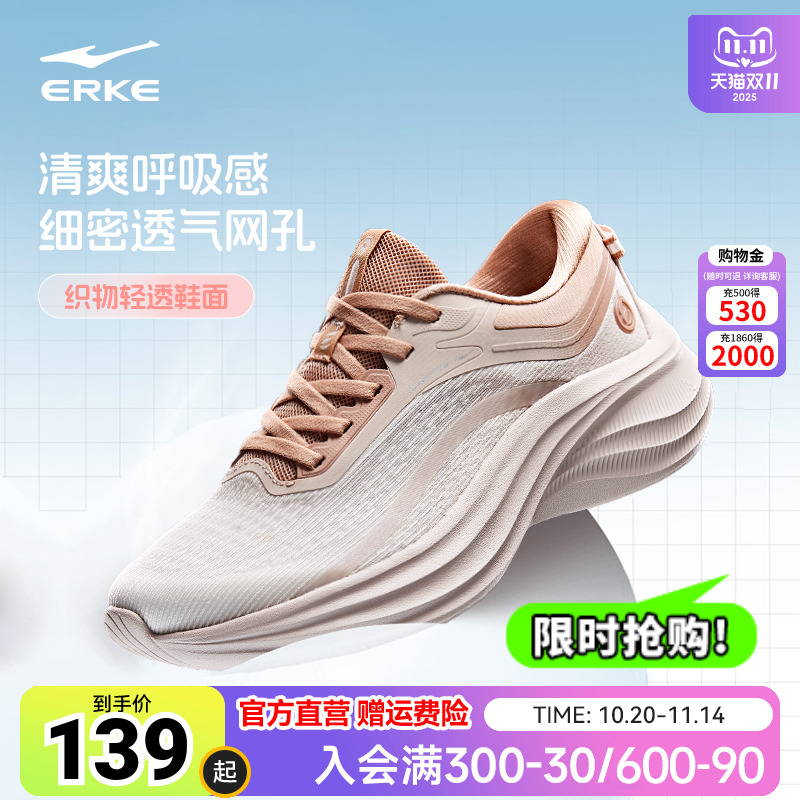 鸿星尔克女鞋秋冬运动鞋减震跑鞋轻便鞋子学生女款网面软底跑步鞋