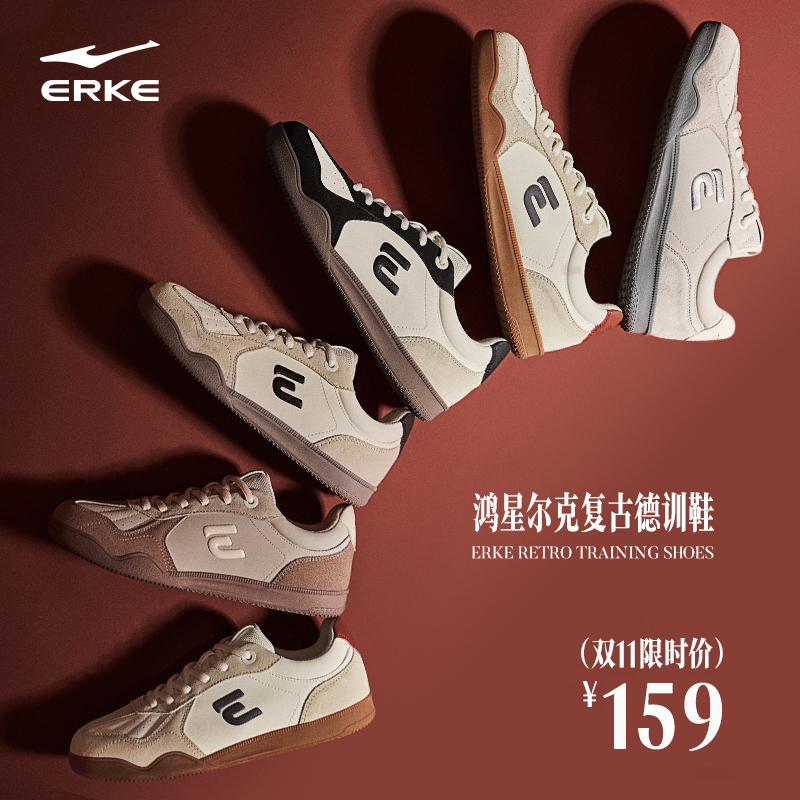 鸿星尔克灵动德训鞋女鞋复古板鞋冬季新款百搭休闲鞋平底运动鞋男