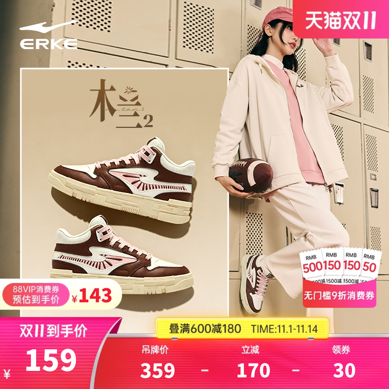 木兰2鸿星尔克女鞋板鞋冬季新款休闲鞋高帮鞋子增高百搭女运动鞋