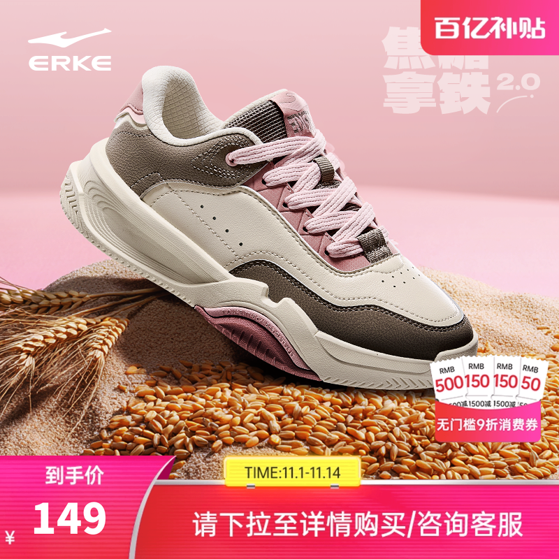 焦糖拿铁鸿星尔克女鞋冬季新款板鞋休闲鞋女士厚底增高鞋子运动鞋