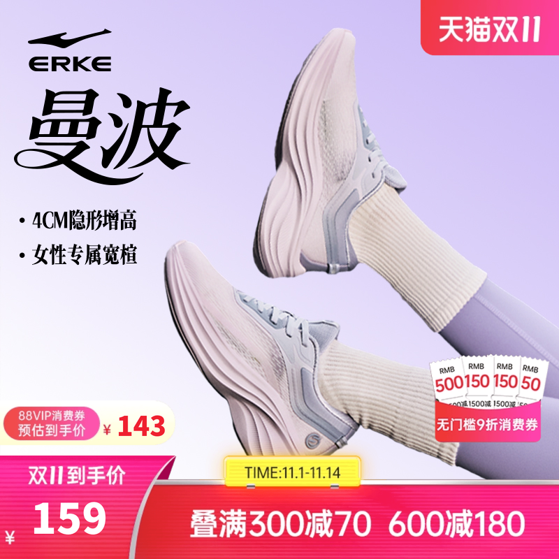 曼波鸿星尔克女鞋秋冬新款运动鞋轻便减震跑步鞋厚底增高学生跑鞋