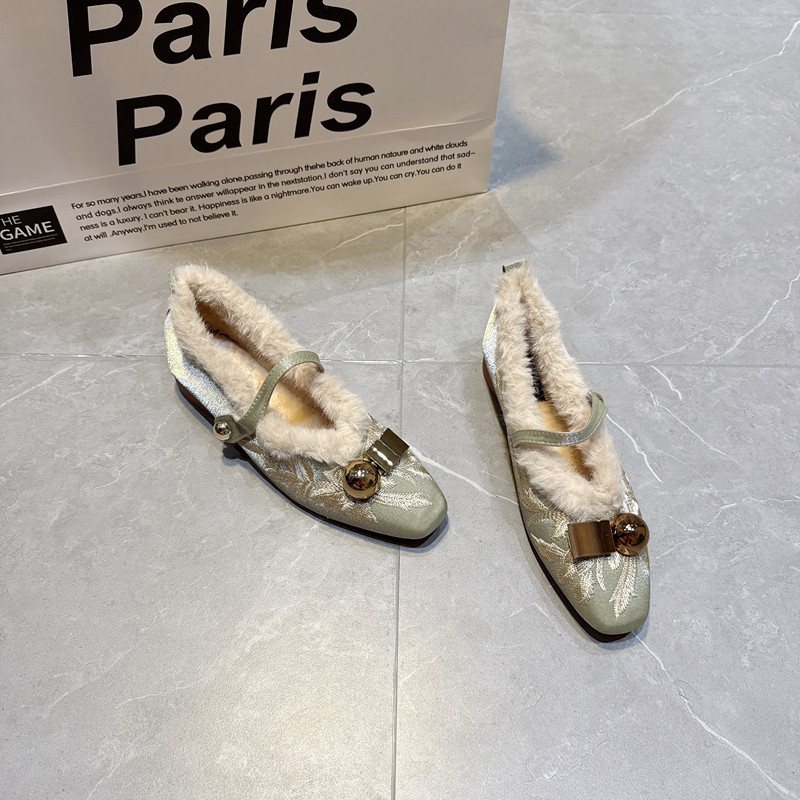 - 绒面 平底 单鞋