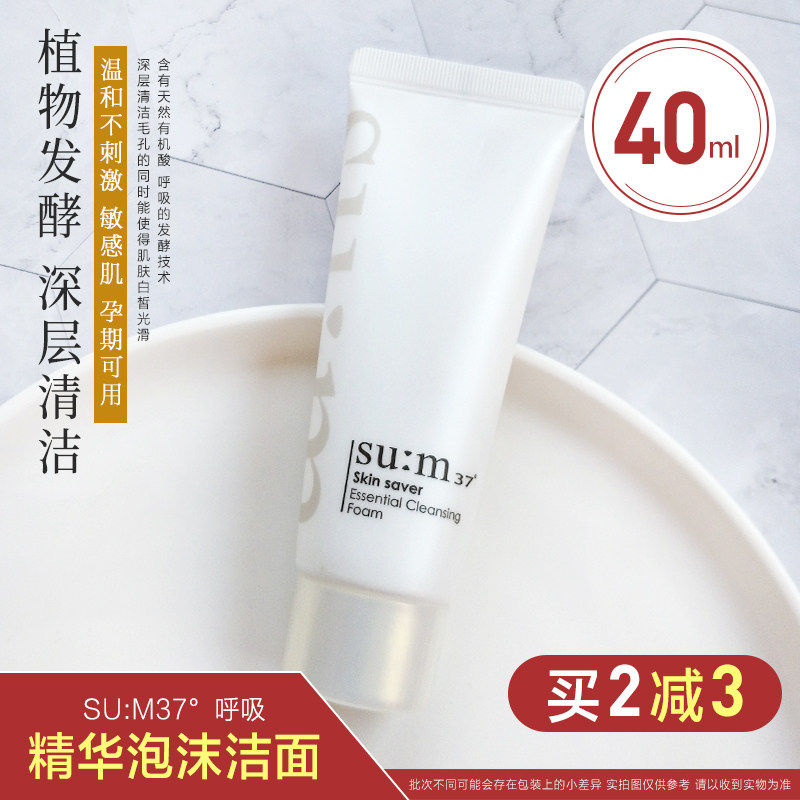 韩国su:m37°苏秘呼吸精华泡沫洗面奶中样洁面乳温和孕妇可用40ml