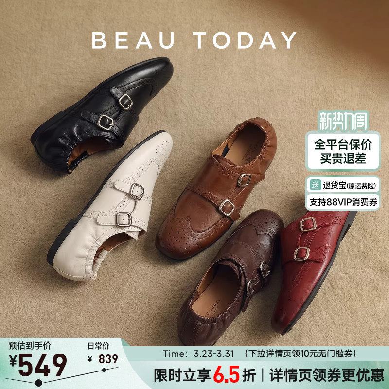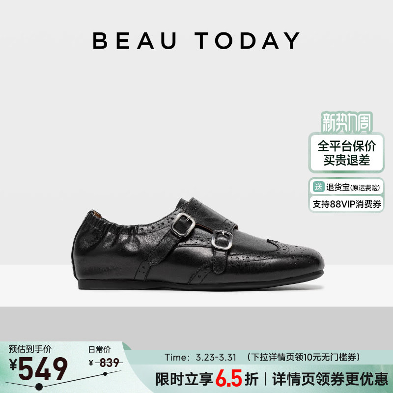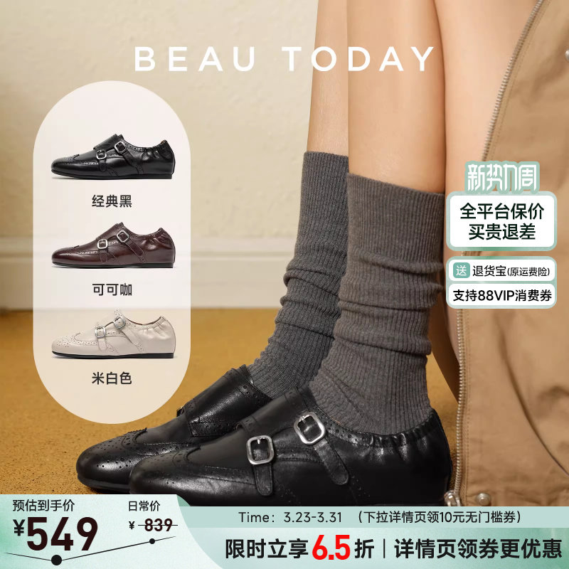BeauToday乐福鞋女款2026老钱风孟克鞋布洛克鞋英伦风小皮鞋