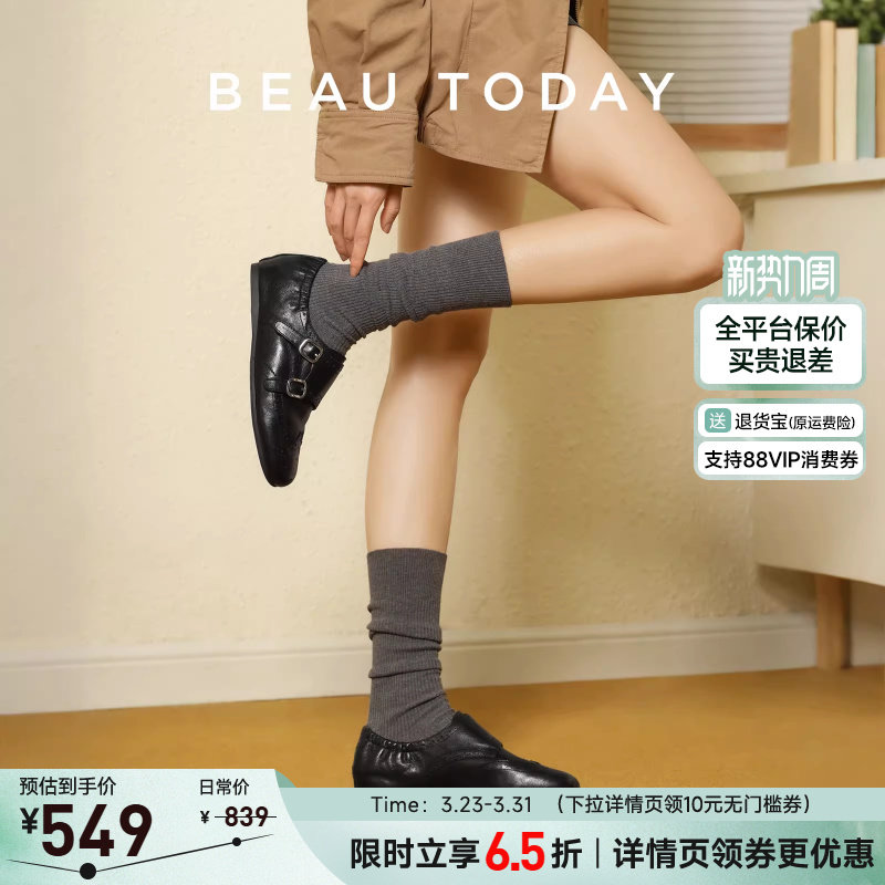 BeauToday乐福鞋女2026新款春英伦风小皮鞋老钱风孟克鞋布洛克鞋