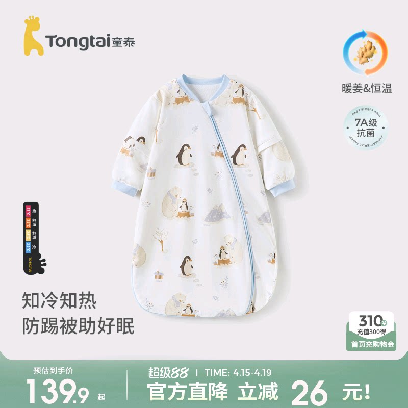 童泰婴儿睡袋纯棉恒温宝宝秋冬季连体睡衣儿童一体防踢被四季通用