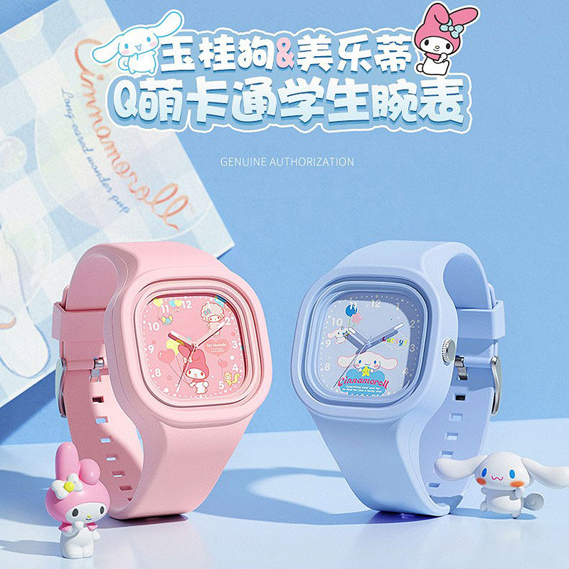 儿童手表女生女孩可爱卡通美乐蒂玉桂狗学生中大童果冻卡通石英表