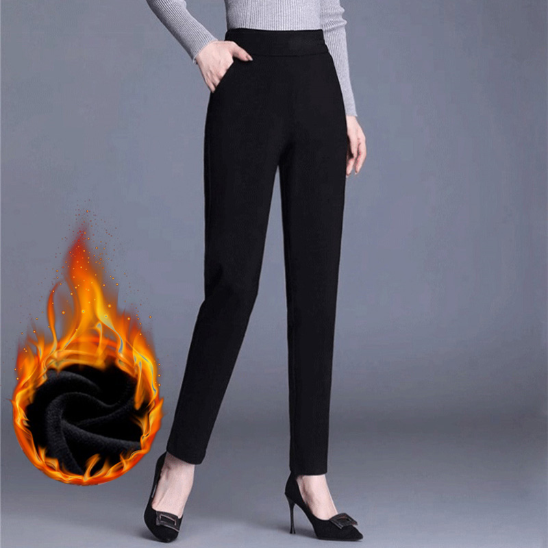 2025高腰加绒加厚哈伦裤秋冬时尚显瘦小脚加厚休闲萝卜裤直筒裤女