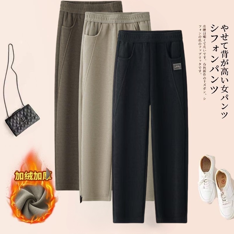秋冬哈伦裤加绒休闲裤2025新款显瘦高腰直筒保暖长裤宽松小脚裤