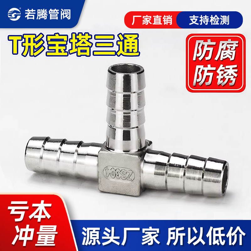 304不锈钢宝塔三通T型丁字三叉格林宝塔软管气管皮管接头15/20/25