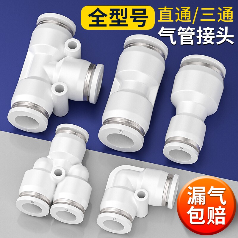 气管快速接头PE三通快插直通PU-6/8/10/12mm变径PG压缩汽管快接PW