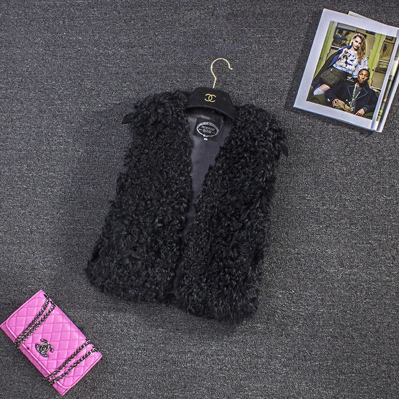 羊羔毛皮草马甲短款圈圈羊卷毛小外套 V领韩版纯色小背心直销包邮
