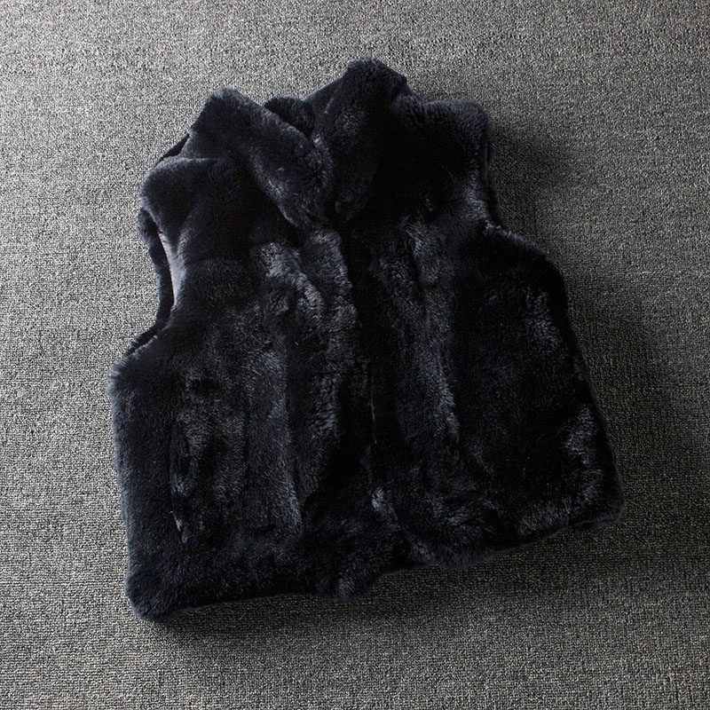 定制2024年黑色小立领皮草马甲短款 獭兔毛小背心 整皮加厚坎肩