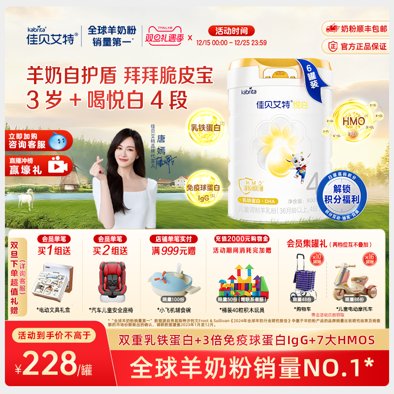 【新品】佳贝艾特旗舰店悦白4段800g*6羊奶粉 3-6岁 成长3重保护