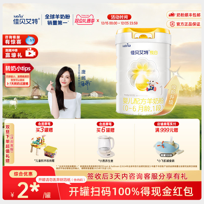 [0元试用]佳贝艾特幼儿羊奶粉3段悦白150g荷兰进口宝宝奶粉新国标