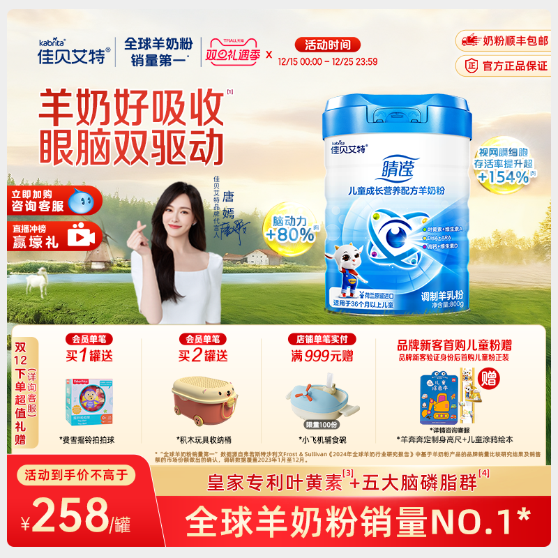 佳贝艾特4段港版睛滢进口羊奶粉儿童学生成长奶粉A2蛋白800g*1罐