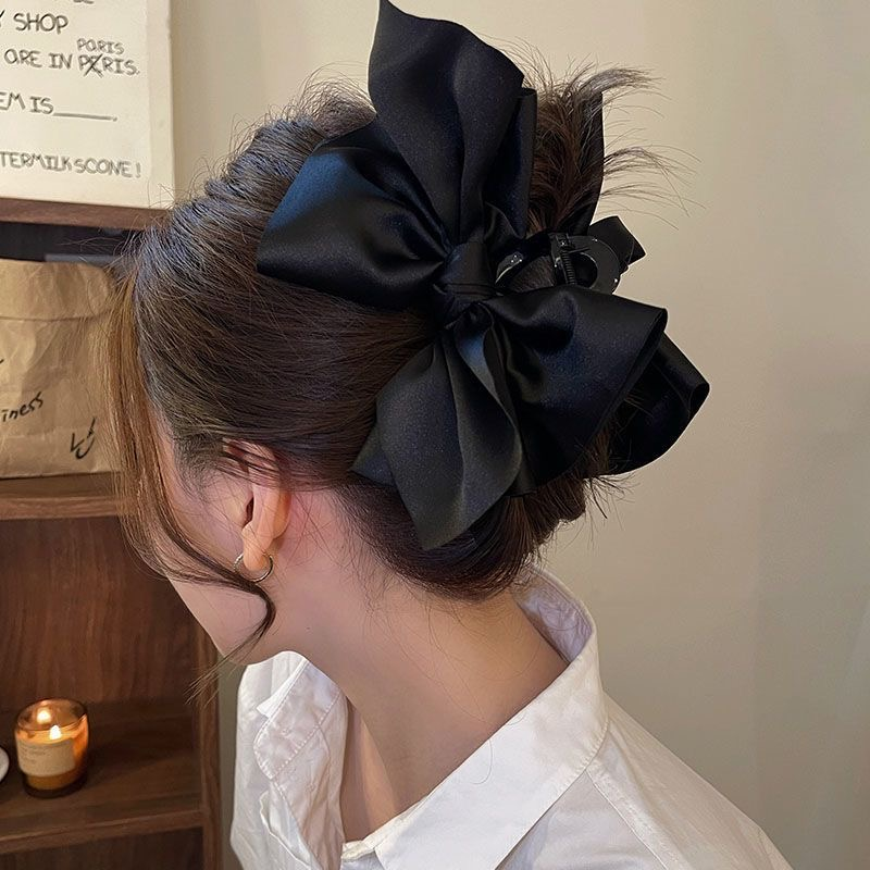 超大号蝴蝶结抓夹发夹女缎面黑色后脑勺不规则百搭高级鲨鱼夹发饰