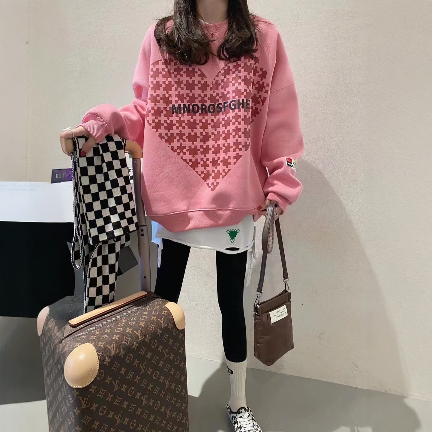 - 套头连帽宽松纯色长袖卫衣绒衫