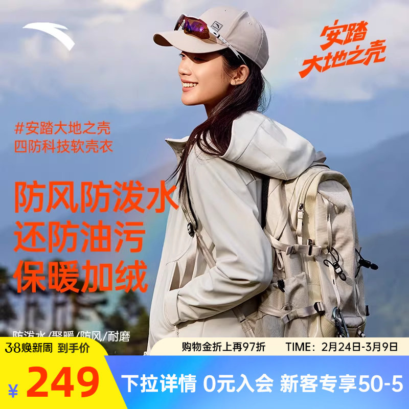 安踏四防软壳衣 | 大地之壳2户外休闲外套女百搭新款防风内胆上衣