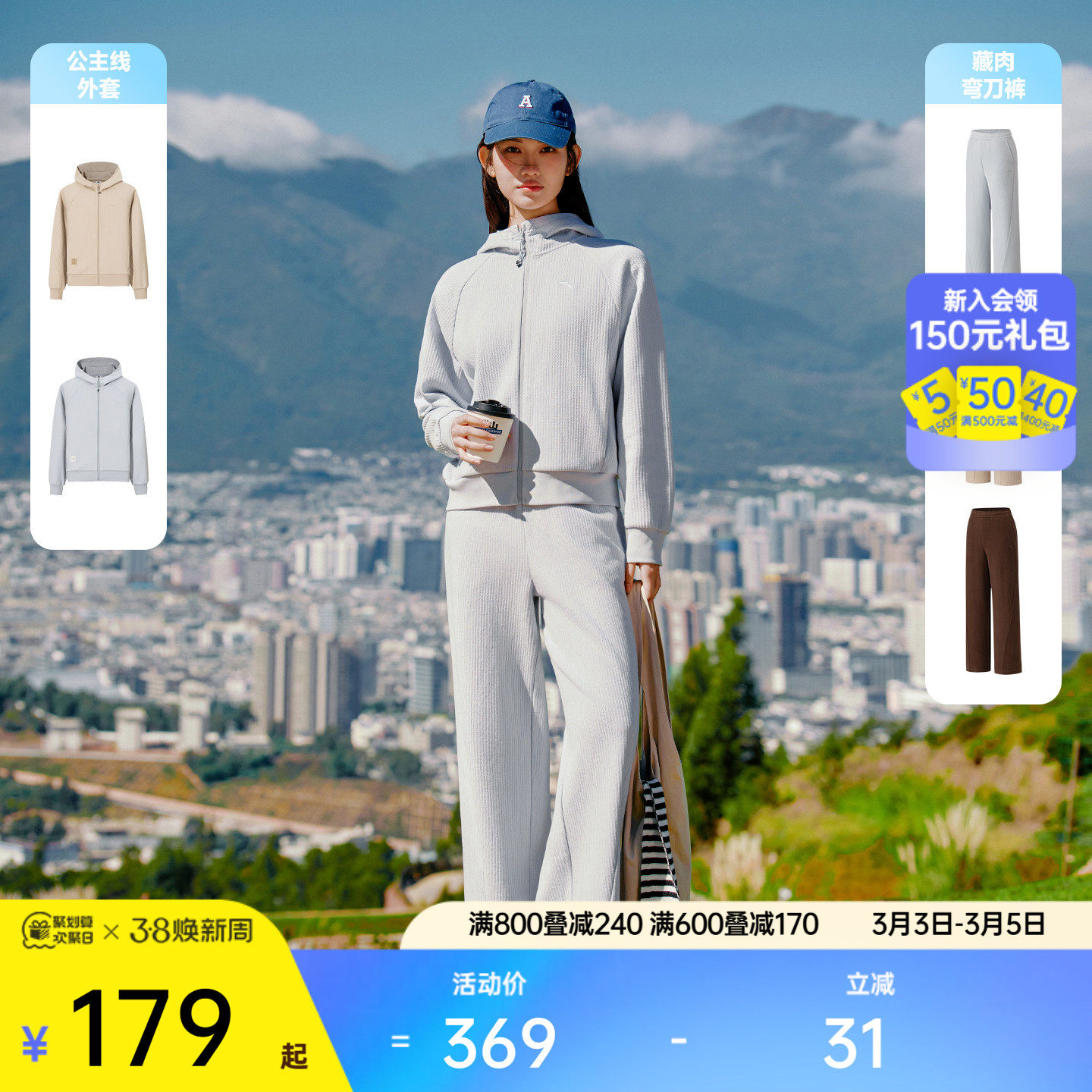 安踏遛弯套装女士春季新款休闲外套开衫针织长裤阔腿裤百搭运动服