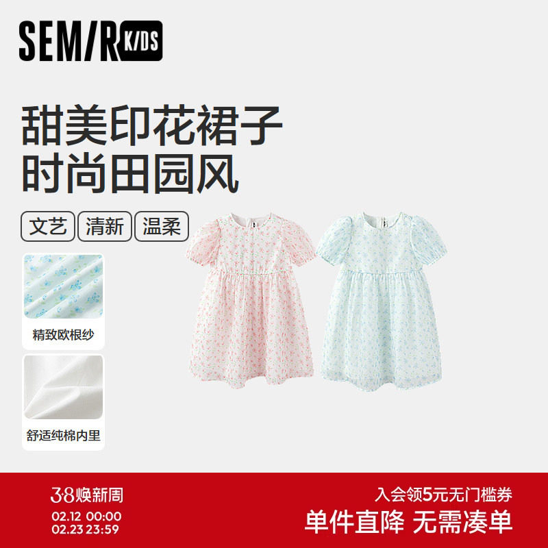 森马儿童连衣裙2024新款法式田园风小清新甜美碎花裙夏季女童裙子