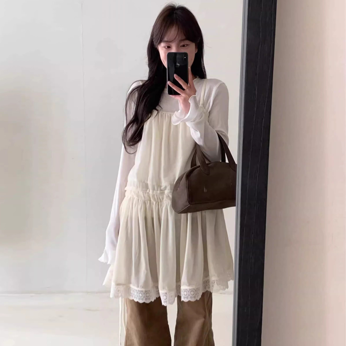 小清新蕾丝罩衫格子吊带连衣裙套装女2026夏季新款韩系甜美两件套