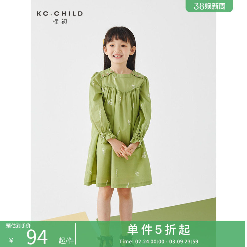 棵初童装女童连衣裙2025夏季新款儿童纯棉柔软舒适绿色小清新裙子