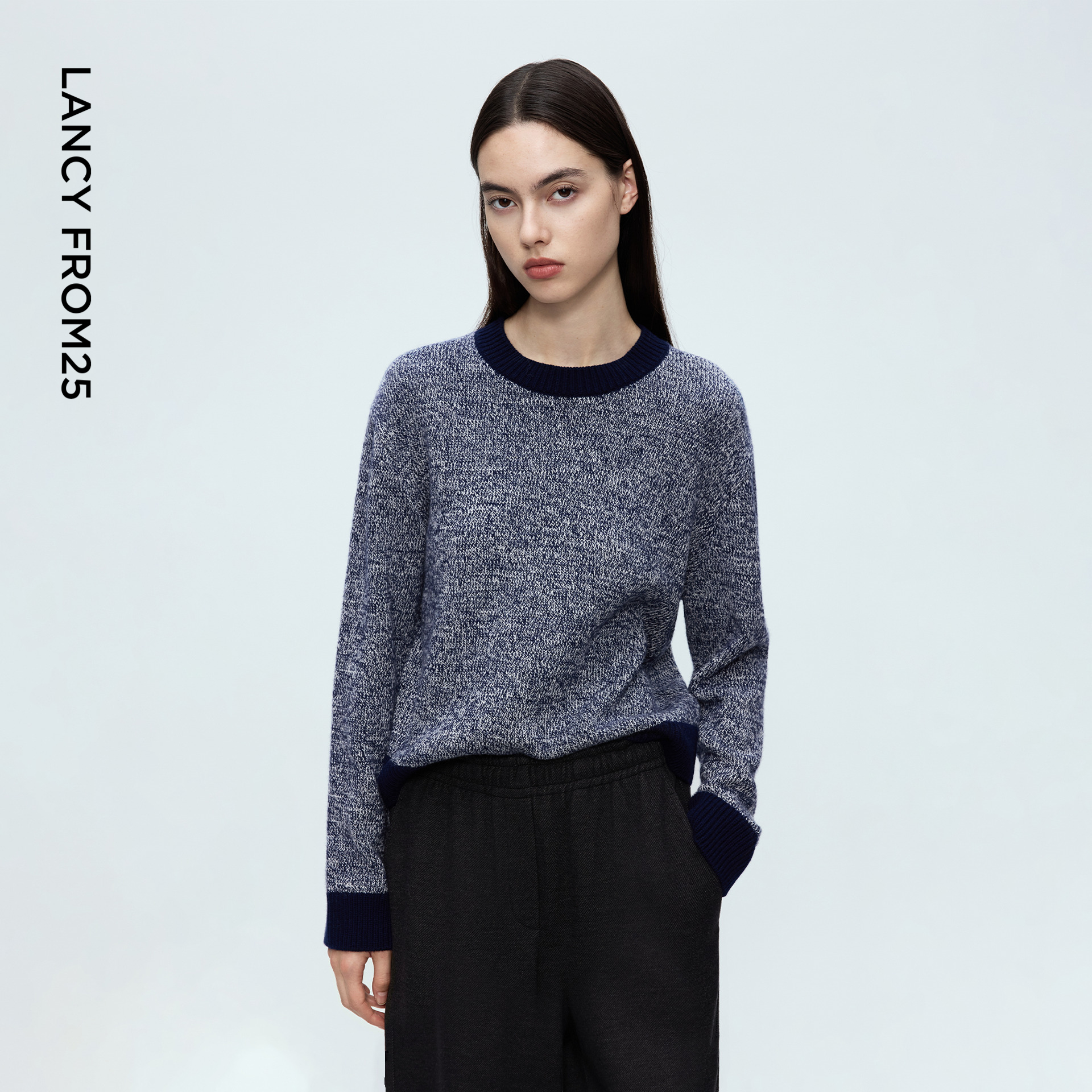 LANCY/朗姿2025冬新款羊毛马海毛复古时尚绞花箱型针织衫短毛衣女