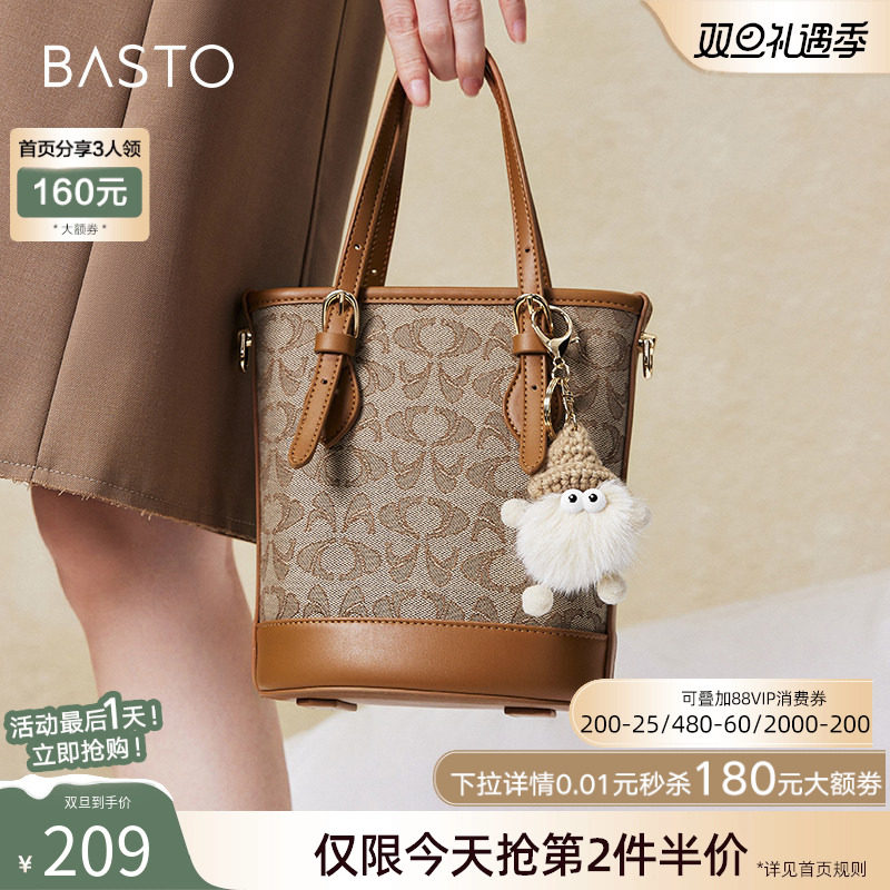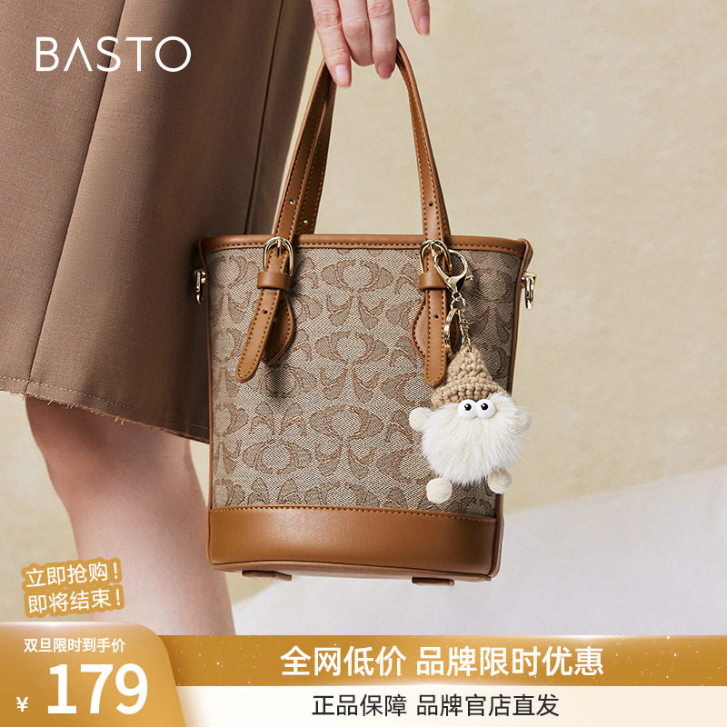 圣诞礼物百思图25秋季商场新款菜篮子水桶包单肩斜挎包女TY016CX5