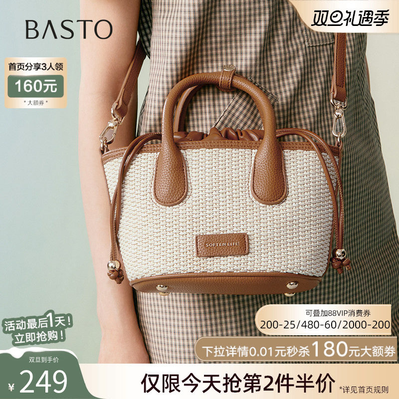百思图25夏商场新款时尚编织菜篮子包水桶包单肩斜挎包女X3675BX5