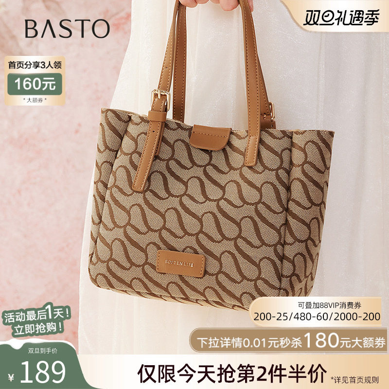 百思图商场同款时尚大容量手拎托特包水桶包单肩斜挎包女X2892BX3